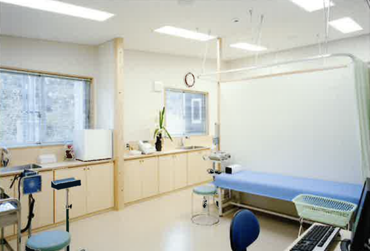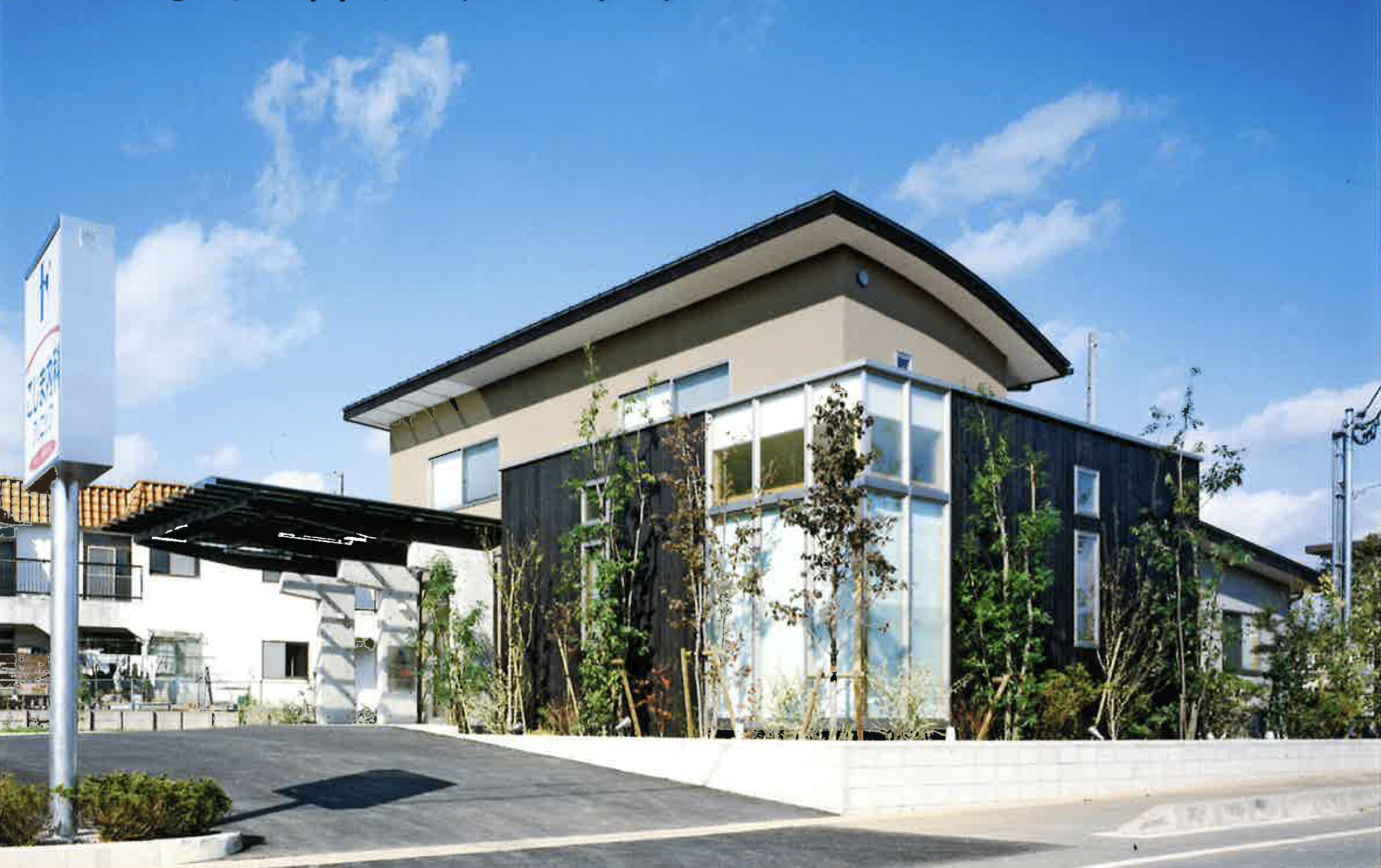 豊川市の西部、国府駅からほど近い区画整理区域内に建つ木造の診療所。