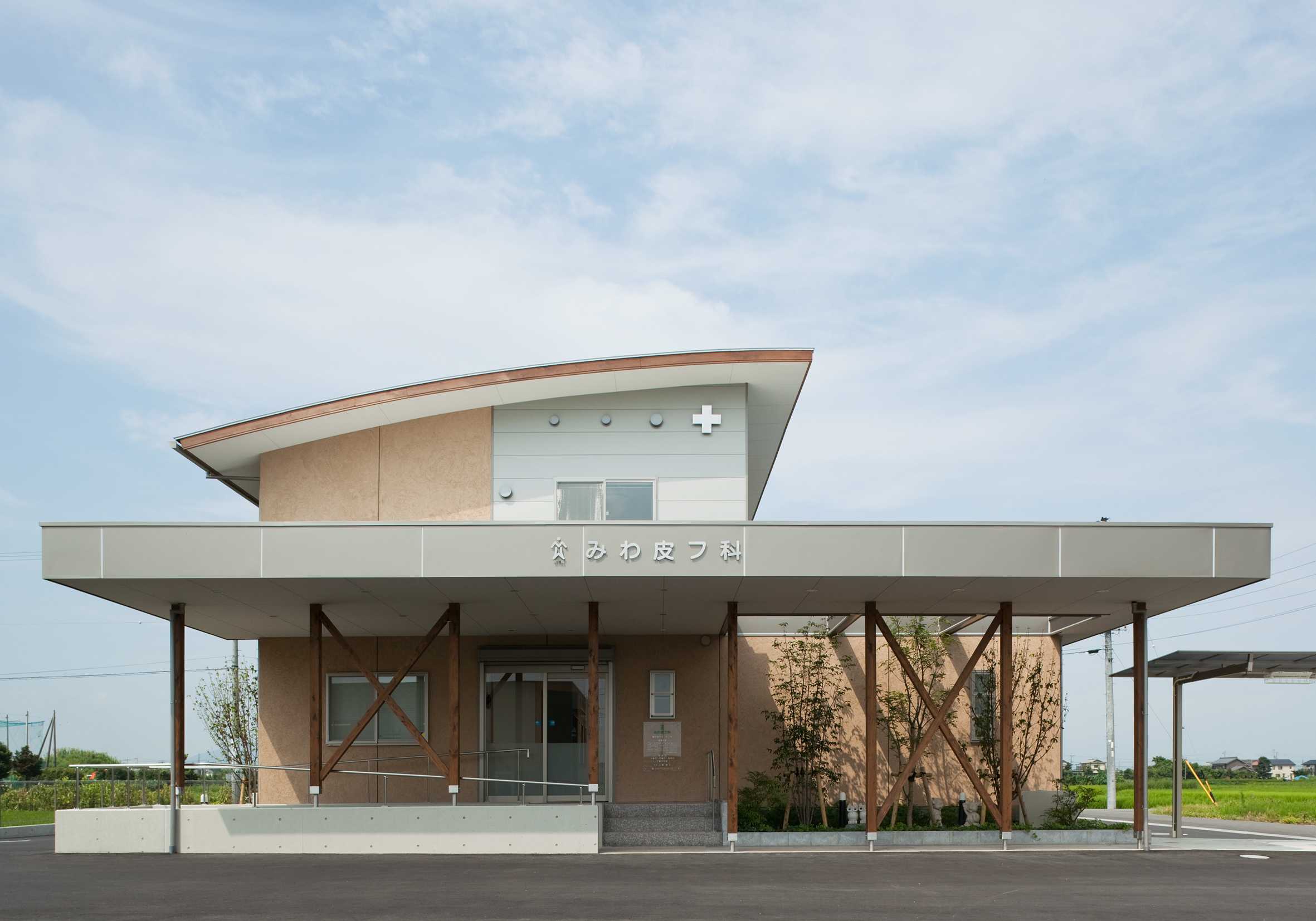 愛知県の西部、愛西市の田園地帯に建つ木造の診療所。