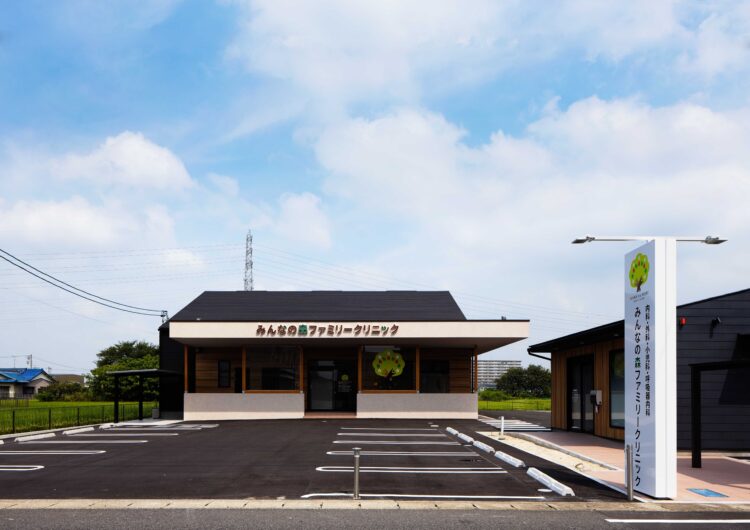 建物全景。手前右側に道路を挟んで当初の診療所がある。