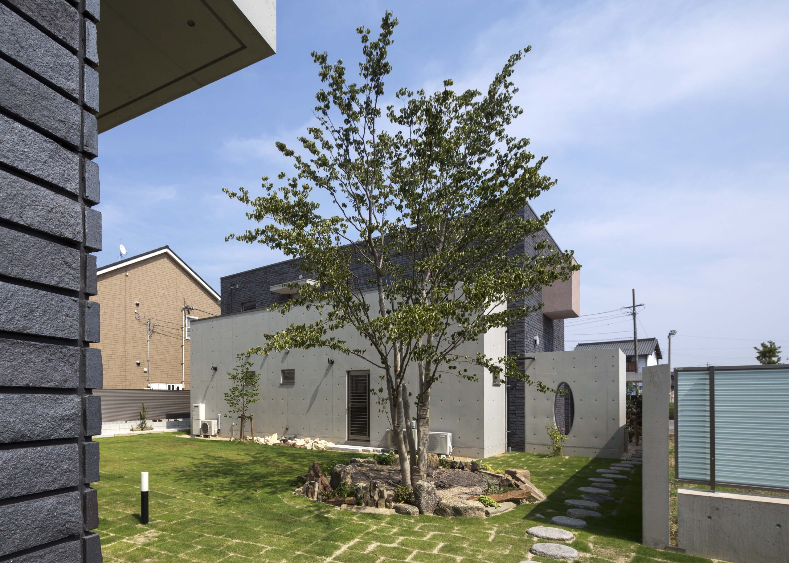 広い芝庭に株立ちのやまぼうしがシンボルツリーとなっている。